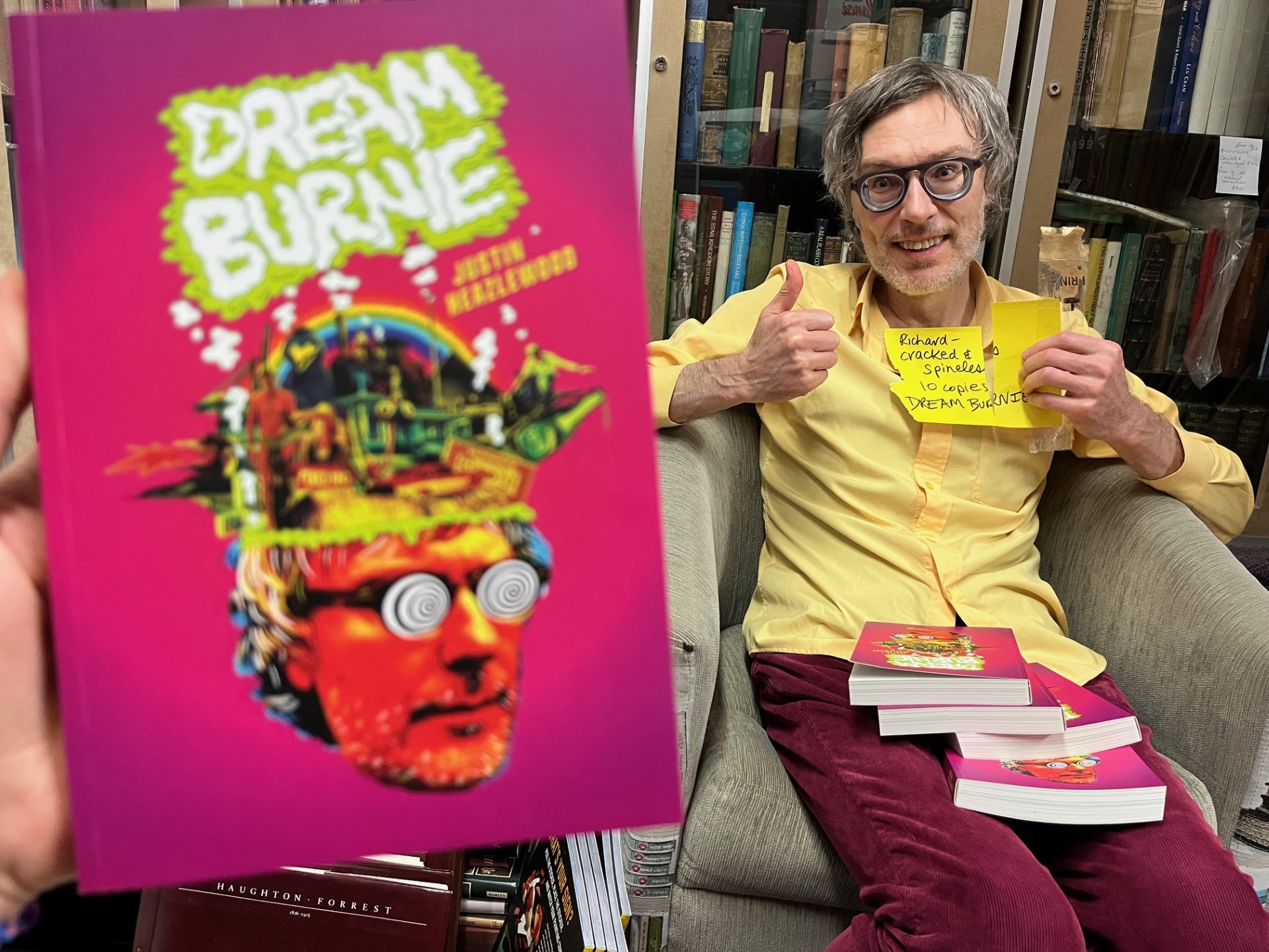 Perhaps Dream Burnie 2 has already been written. It will mainly consist of comments from Hobart bookshop Cracked & Spineless’s farcebook post. I dropped in while on tour and may have forgotten to return their pen. Thanks Richard for the support!