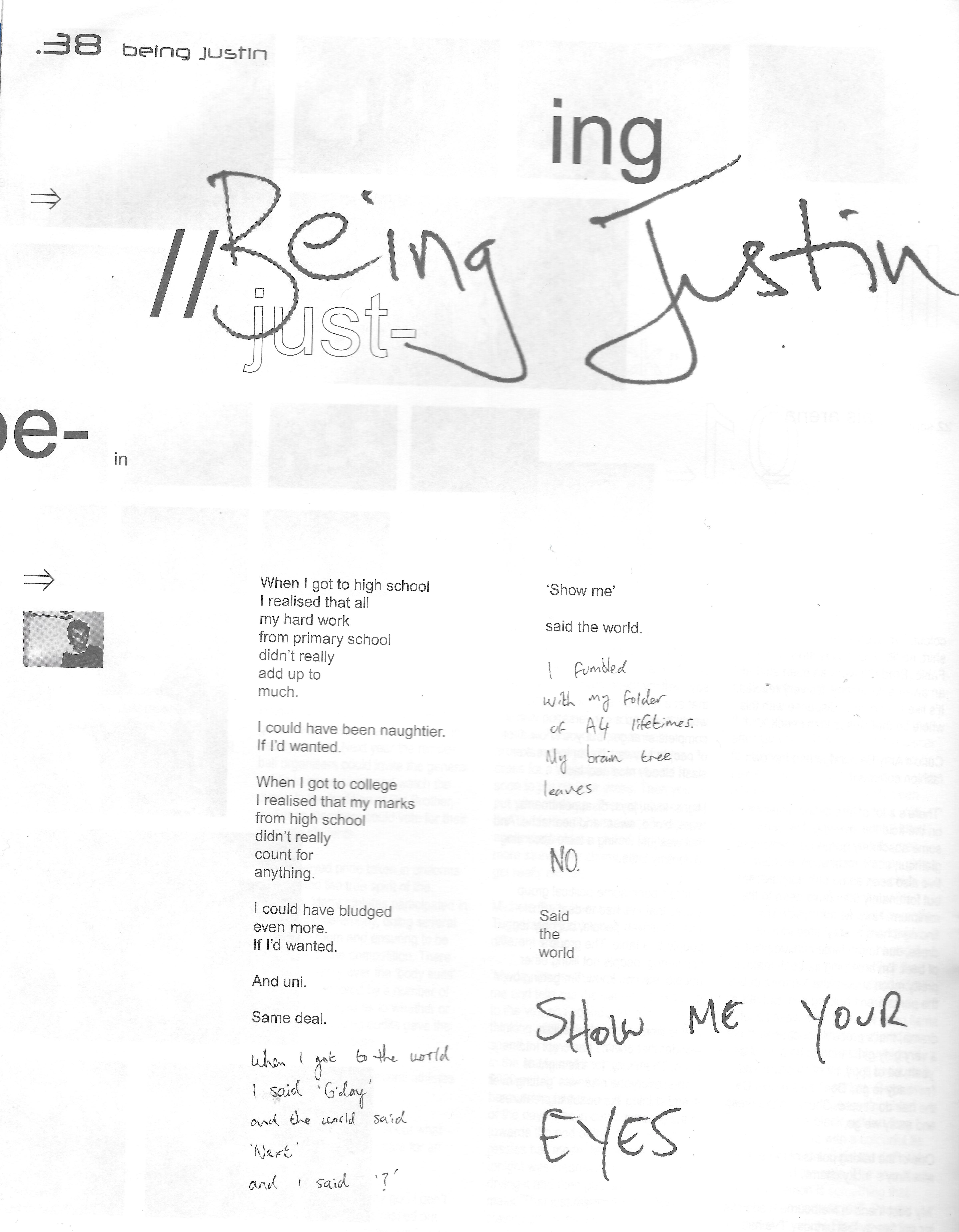 In my final year of uni I had a column in the University of Canberra mag Curio called Being Justin Heazlewood. I wrote this leavers poem: