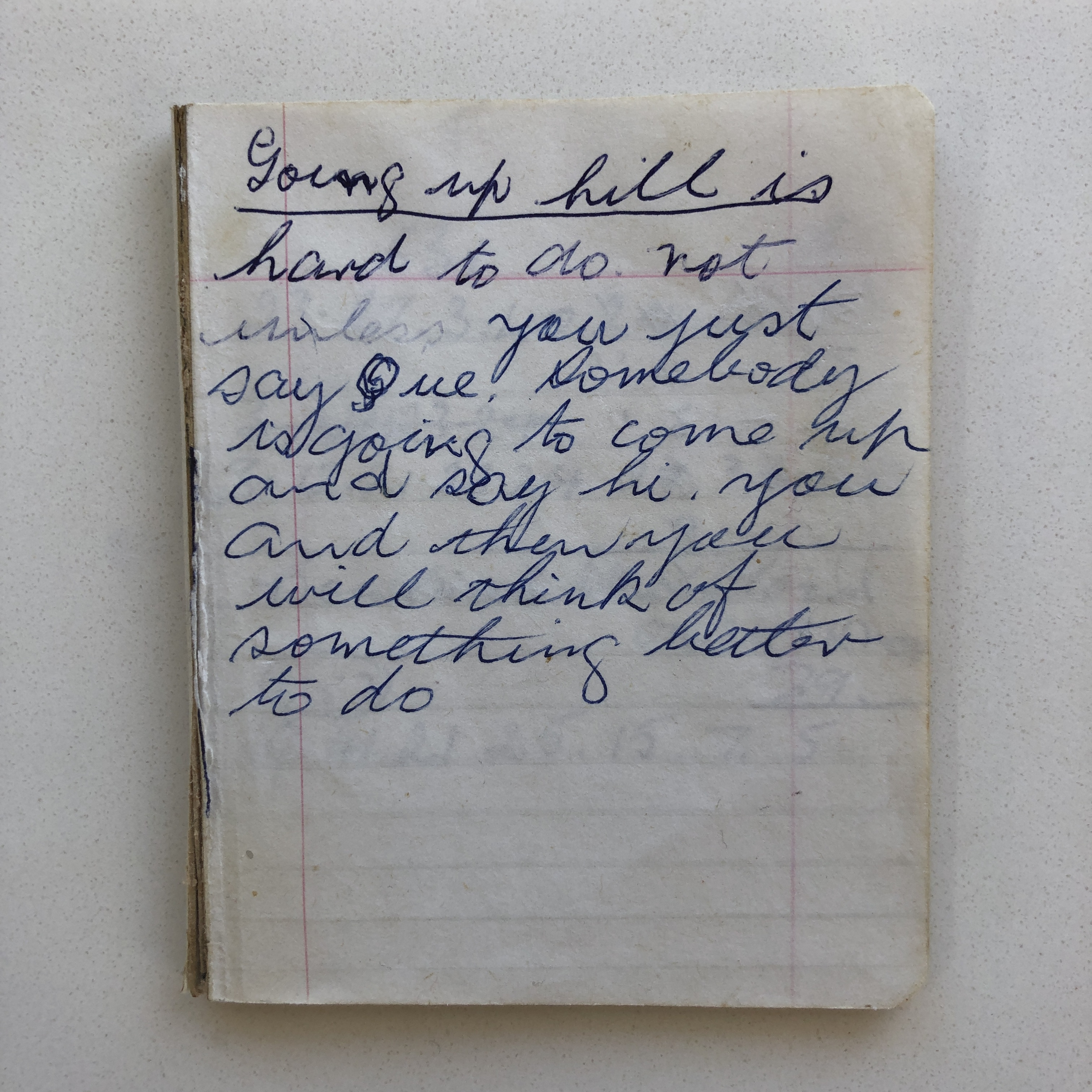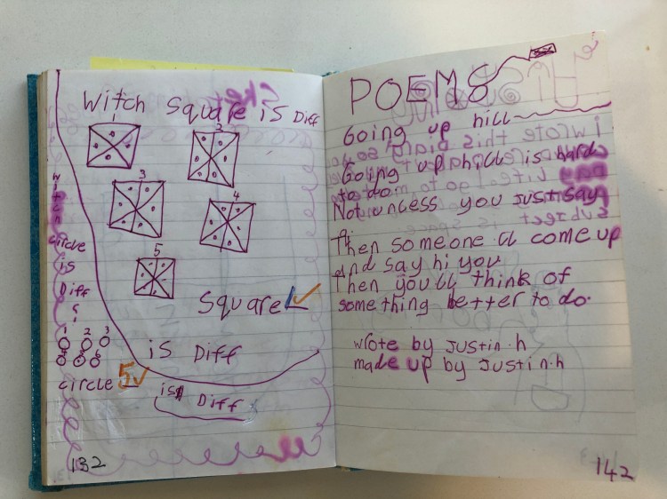 Last year I happened upon a notebook belonging to my Pop. It contained my first poem Going Up Hill complete in his handwriting. It has quickly become one of my favourite possessions. I’m intrigued by the events that led to Pop writing the piece down. Perhaps I was coming up with it for the first time and sharing it with him. It makes me think of the excellent movie The Kindergarten Teacher starring Maggie Gyllenhaal where she becomes obsessed with a five-year-old who spouts genius poetry.