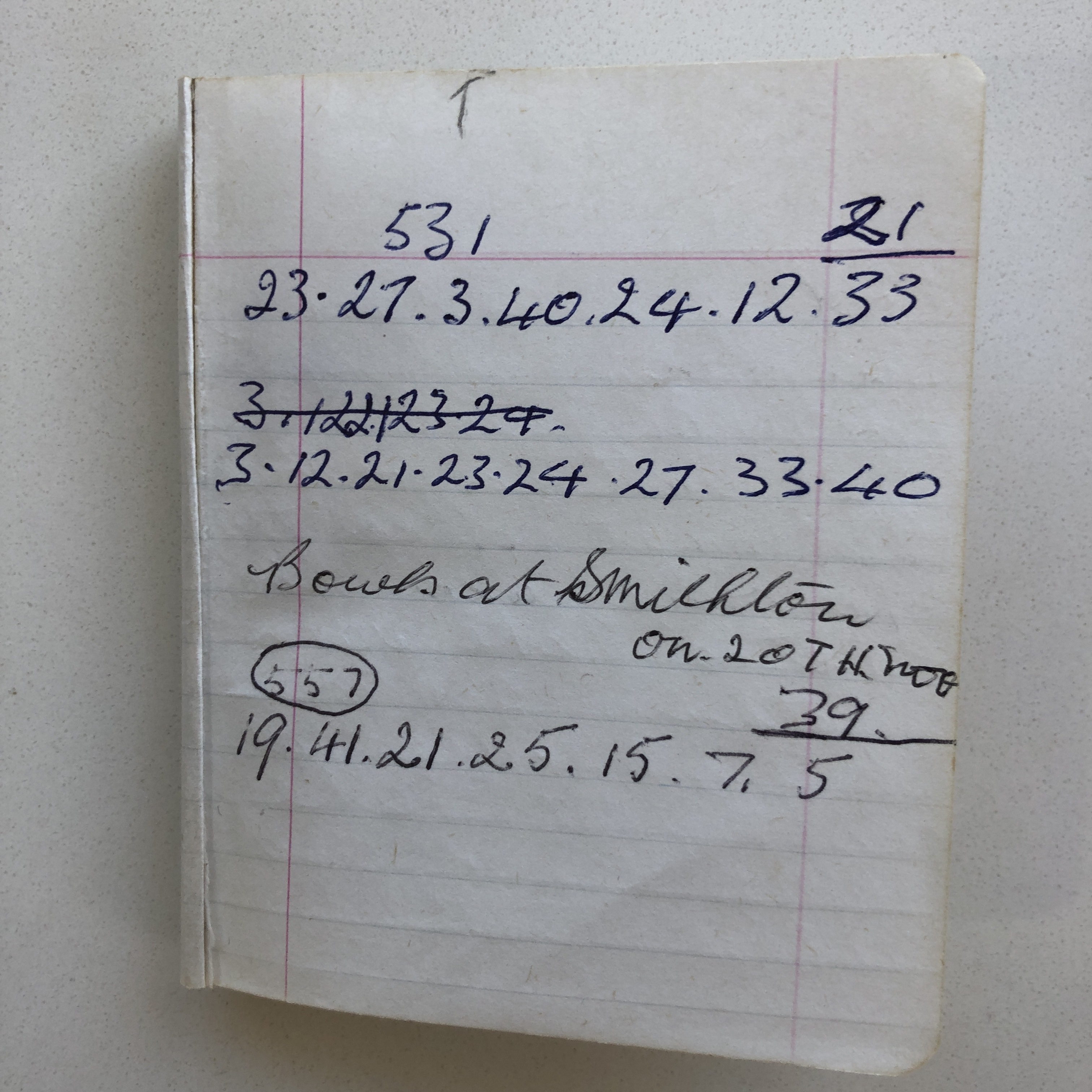 The rest of Pop’s notebook is made up of shopping lists and Tattslotto numbers. I carbon dated it by putting “Tattslotto Draw 531” into a search engine. Sure enough, it provided the date of late 1985.